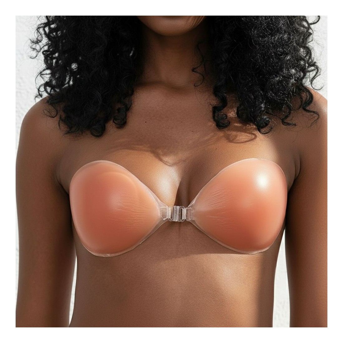 The godmother of stick on bras. This classic silicone stick on bra was the founding bra of our collection, the go to for any outfit. With its super adhesive backing that will help to keep this beauty firmly in place, time and time again if you care for it correctly! In sizes A to C it can add that extra bit of 'oomph' giving you the chance to rock a cup size slightly bigger than your usual size. And for us bigger girlies, E and F, it's slightly thinner, helping to keep you safe and secure with delicious cleavage but not weigh you down. It smoothes flawlessly against your skin and is almost undetectable should the cute guy at the bar sneak in for a cheeky feel mid snog! It can also be used as a booster, worn inside a balconette bra for example to help with that little extra 'va-va-voom' should you need it! Our backless and strapless masterpiece. And for all my melanin babes out there, we're working on getting you a more suitable 'nude' colour. Watch this space.