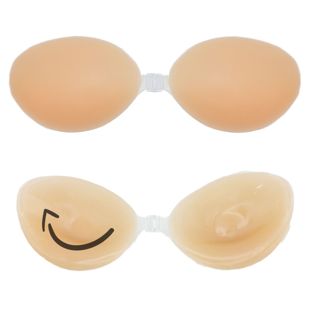 Each cup features a soft adhesive backing that gently adheres to the skin for a secure, non-slip fit. The center clasp allows you to adjust the level of cleavage and support to your liking. Lightweight, reusable, and easy to clean, this bra is ideal for special occasions or everyday wear when you want complete freedom without visible straps or bands.