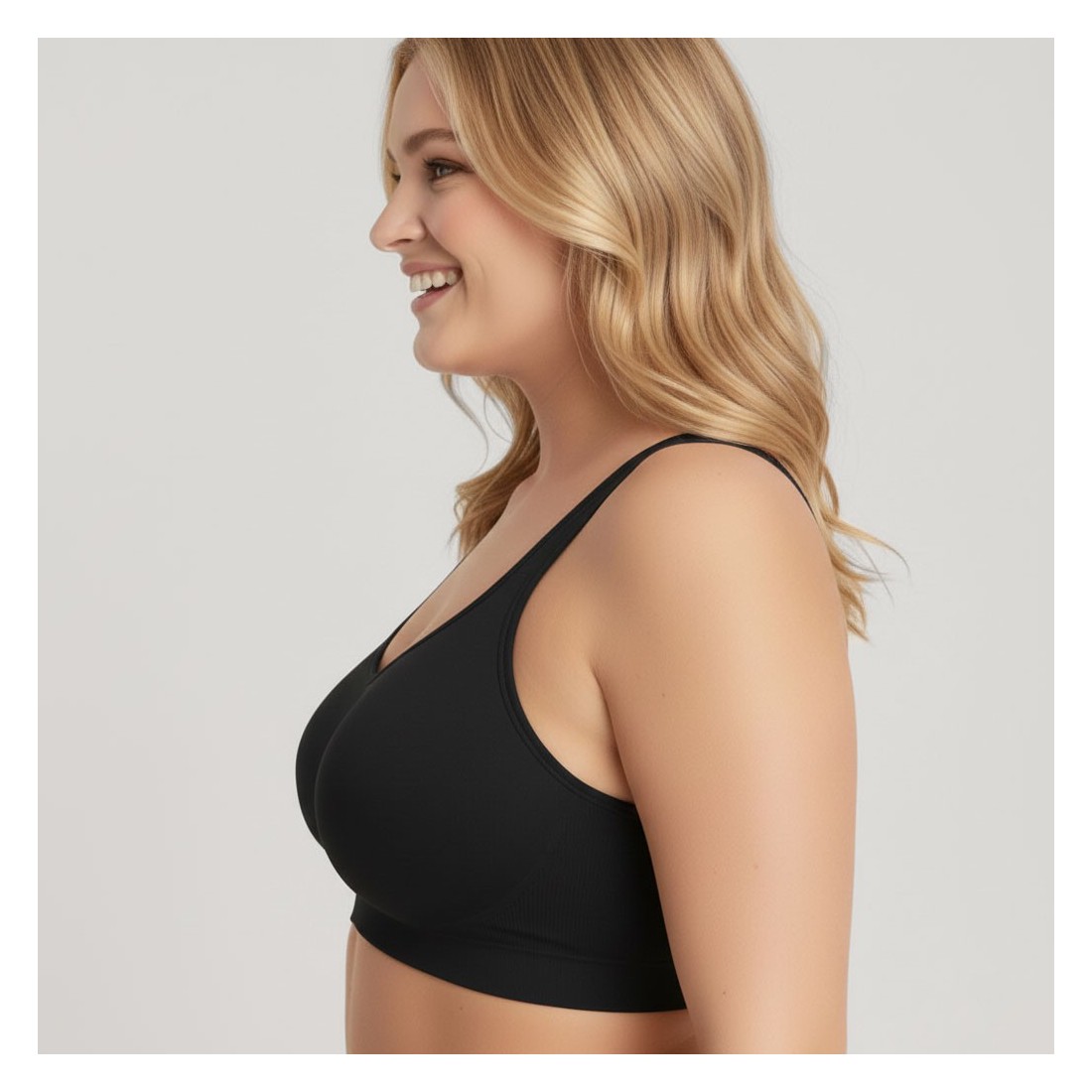 The Luna ComfortFit® Seamless Wireless Bra in Black is your go-to everyday essential. Designed for smooth, wire-free comfort, it provides gentle support with a clean, minimal silhouette that works effortlessly under darker clothing and workwear.